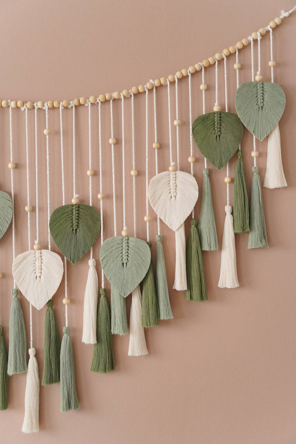 Transform your space With our stunning handmade wall rug, featuring a unique design showcasing intricately woven leaves. This exquisite piece adds a vibrant, textured look, making it a perfect focal point in any room.