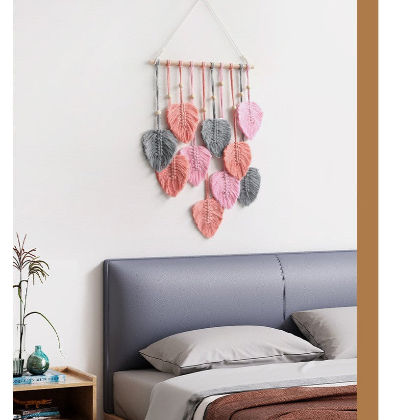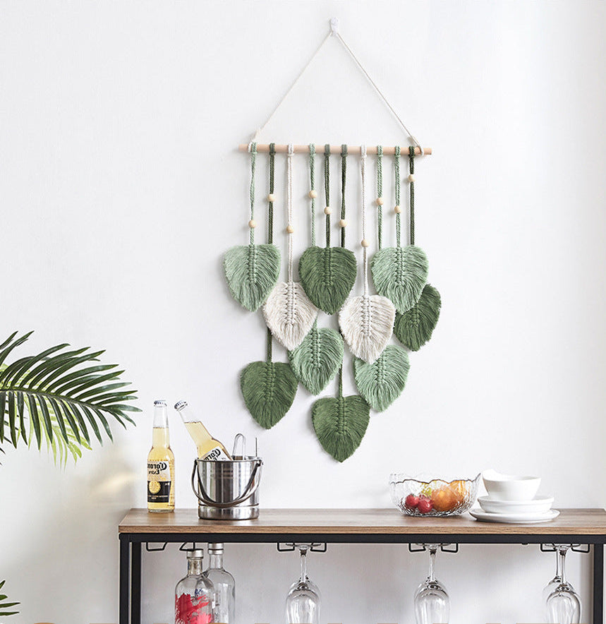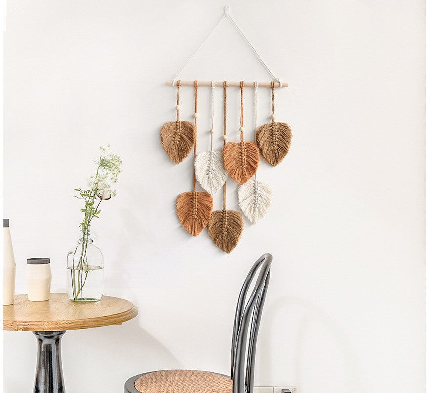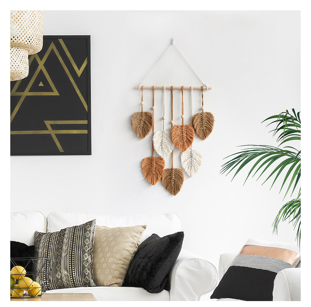 Transforma tu espacio con nuestro impresionante tapiz tejido a mano, una combinación perfecta de diseño escandinavo minimalista y encanto acogedor. Esta exquisita decoración presenta un hermoso patrón de hojas hecho a mano de algodón de primera calidad, aportando un toque de naturaleza a su hogar.